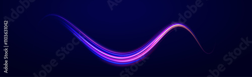 Acceleration speed motion on night road. Colorful Light Trails, Long Time Exposure Motion Blur Effect. Abstract fire flare trace lens flares acceleration speed motion on night road.