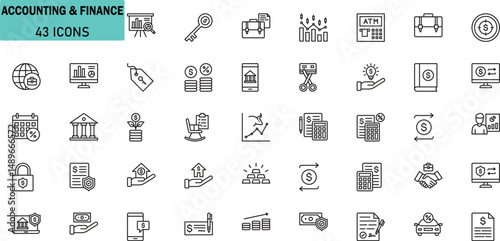 Accounting and Finance Vector Icon Set. 43 Line Style Business, Banking, and Money Symbols