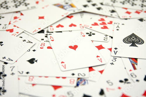 ace of hearts in a middle of cards. very shallow DOF