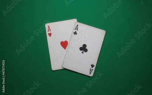 Aces high poker night excitement with heart and club suits creating a winning card game concept