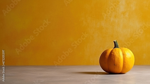 Acorn Squash with Copy Space Yellow Background Selective Focus