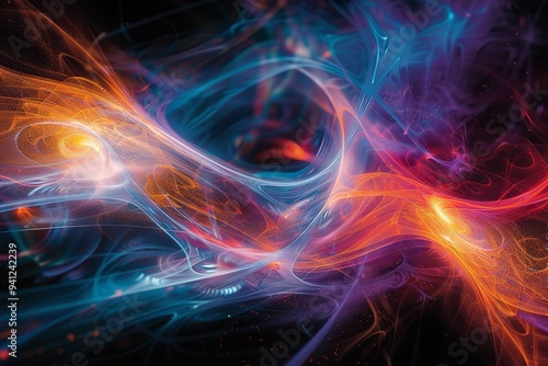 A dark background and vibrant waves that provide as an example of space for background use, Generative AI.