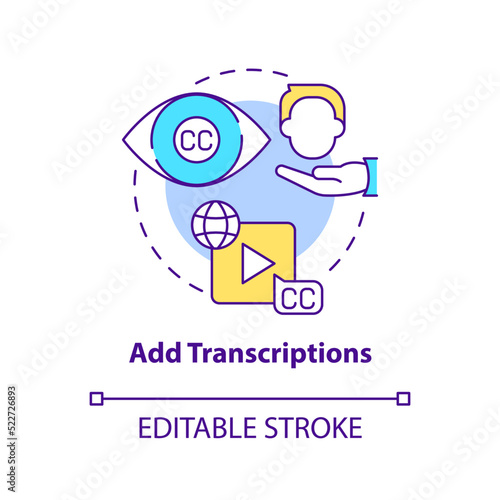 Add transcriptions concept icon. Subtitles. Sales online training videos abstract idea thin line illustration. Isolated outline drawing. Editable stroke. Arial, Myriad Pro-Bold fonts used