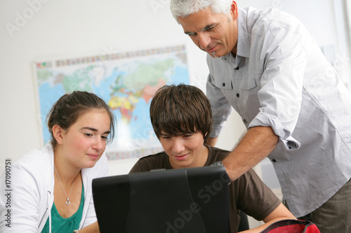 Adolescents devant un ordinateur portable près d'un homme