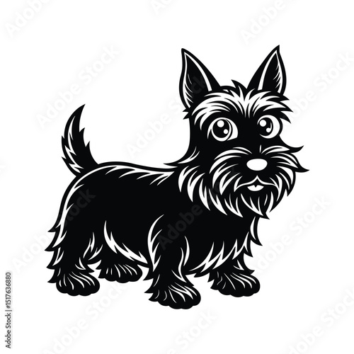 Adorable black scottish terrier cartoon illustration on a clean white background showing delightful features.