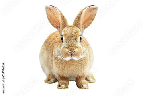 Adorable brown rabbit sitting attentively, isolated on a white background, showcasing its fur, ears, and delicate features.