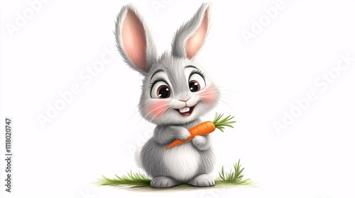 Adorable Bunny Rabbit Holding Carrot Cute Cartoon Animal Illustration