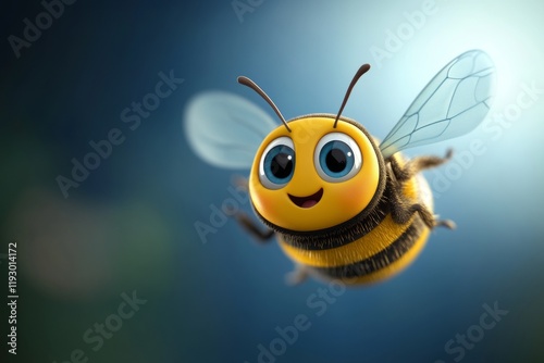 Adorable Cartoon Bee in Flight: A 3D Rendered Delight