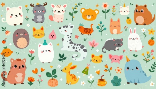 Adorable cartoon creatures in a seamless and whimsical layout.