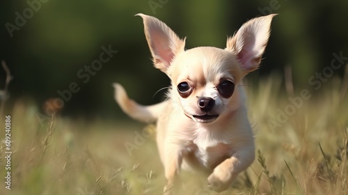 Adorable chihuahua Frolicking Outdoors in the grass with the cute look, generative ai