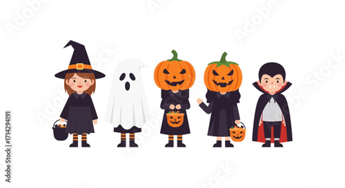 Adorable children dressed in Halloween costumes ready for trick-or-treating.