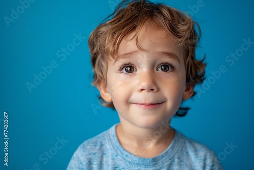 Adorable Curly-haired Toddler with Blue Eyes. Generative AI.