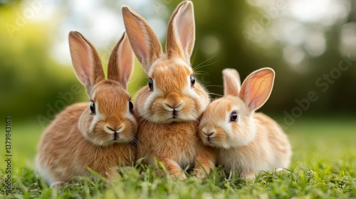 Adorable Easter Bunnies Enjoying Time Together in Natural Green Environment with Families