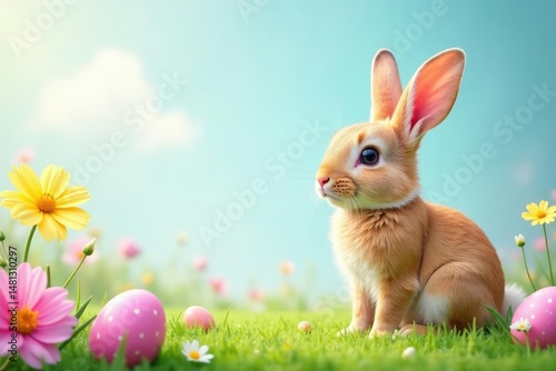 Adorable Easter bunny banner with pastel colors and spring flowers, perfect for Easter decorations , carrots, Easter, spring flowers