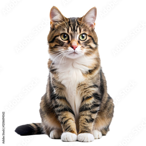 Adorable Fluffy Cat Posing on Pure White Background, Perfect for Pet Projects, Websites, and Designs