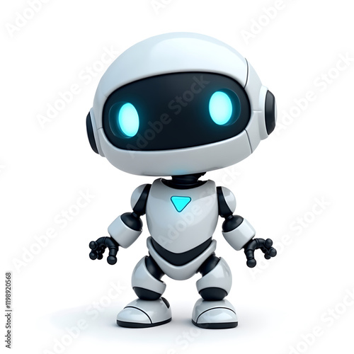 Adorable Futuristic Robot with Bright Blue Eyes and a Sleek White Design in a Digital Illustration