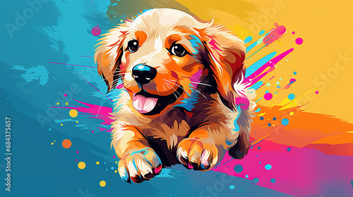 Adorable golden retriever puppy dog running in pop art style illustration. Colorful minimal vector art.