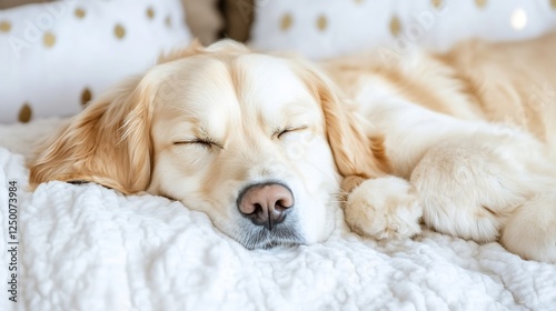 Adorable Golden Retriever Sleeping Peacefully on Soft Bed : Generative AI