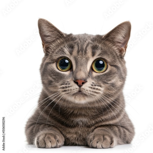 Adorable Gray Tabby Cat Portrait: A Close-Up of a Curious Feline with Striking Eyes