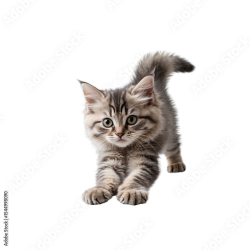 Adorable Grey Tabby Kitten Stretching on Transparent Background