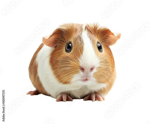 Adorable guinea pig with big eyes, showcasing its beautiful fur pattern, isolated on transparent background