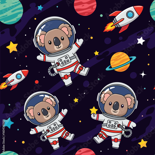 Adorable Koala Astronauts in Space: Seamless Pattern for Kids' Products