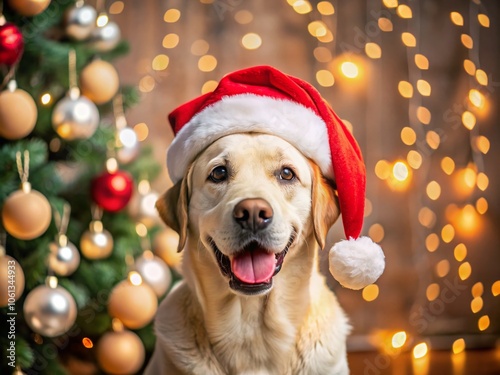 Adorable Labrador Dog in Red Christmas Santa Hat for Holiday Cheer, Festive Canine Portrait, Cute Dog Photography, Merry Christmas Dog, Pet Holiday Spirit