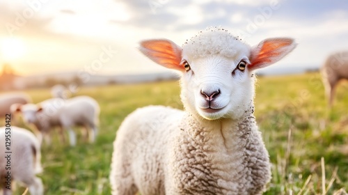 Adorable Lamb Smiling Playfully in a Field with Grassy Background : Generative AI