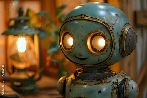 Adorable Robot Toy Interacting with Cheerful Child in Cozy Living Room with Inviting Atmosphere