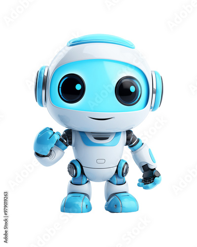Adorable robot with a waving smile. Perfect for artificial intelligence concepts, robot games, and tech customer service. Generative AI