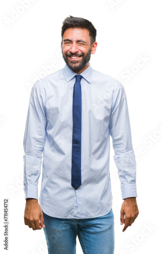 Adult hispanic business man over isolated background winking looking at the camera with sexy expression, cheerful and happy face.