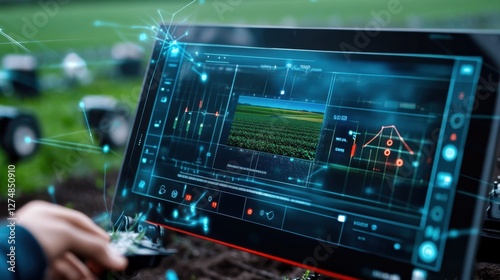 Advanced agricultural monitoring technology smart farm digital interface outdoor setting close-up view precision farming