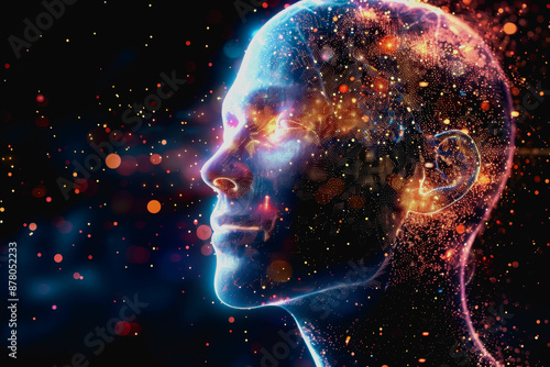 Advanced AI with bright neon lights and digital particles