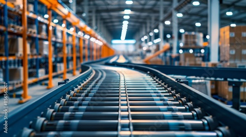 Advanced automated sorting mechanism on a conveyor belt, high-tech logistics center, raw finish, precise and efficient technology