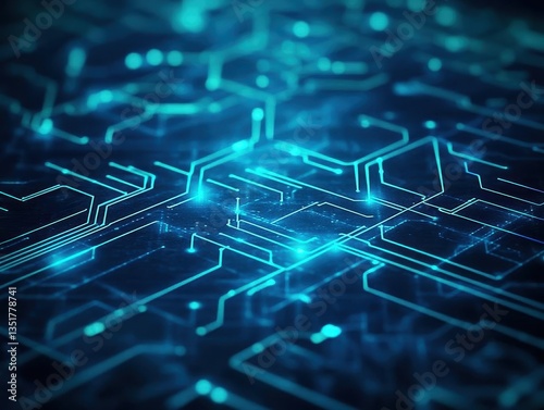Advanced circuit board with a blue glow on a dark background creating a striking abstract futuristic technology design