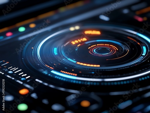 Advanced display graphics, glowing translucent panels, immersive interface, 3D illustration