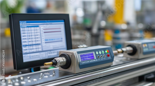 Advanced process analytical technology (PAT) provides real-time monitoring of pharmaceutical manufacturing. Sensors are shown embedded in the production line, with data appearing