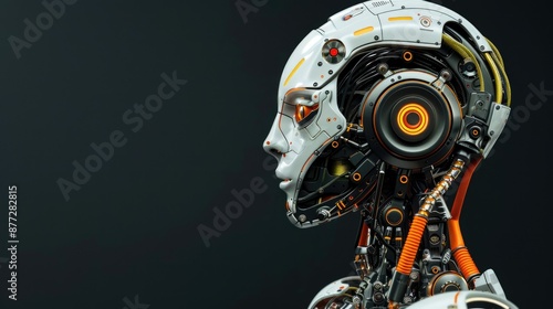 Advanced robot model on black background, representing high-tech industry