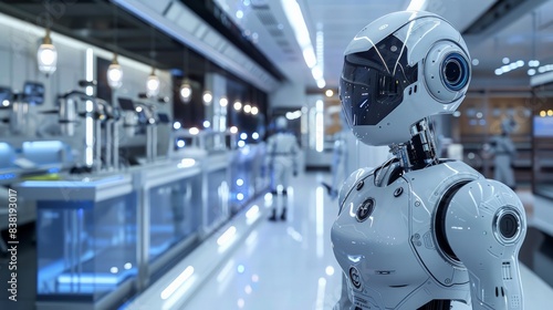 Advanced Robotics Lab: Create a scene of an advanced robotics lab with cutting-edge robots, research activities,