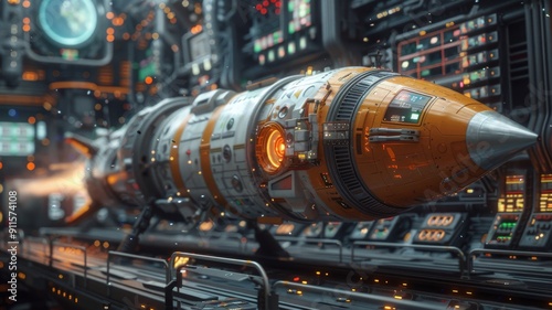 Advanced Rocket Ready for Launch in High-Tech Facility