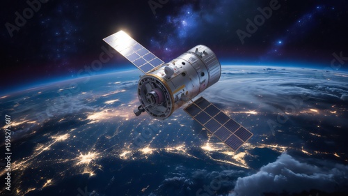 Advanced Satellite Orbits Earth at Night, Illuminating Global Connectivity and Space Technology Innovation