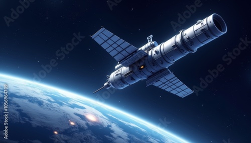 Advanced space telescope orbiting Earth with solar panels and technology in a cosmic environment