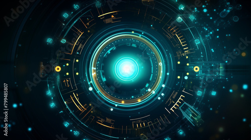 Advanced tech interface, neon blue circuits, high-tech cybernetic background