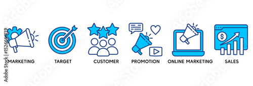 Advertising icon set vector illustration concept relate to marketing, target, customer, promotion, online marketing, and sales