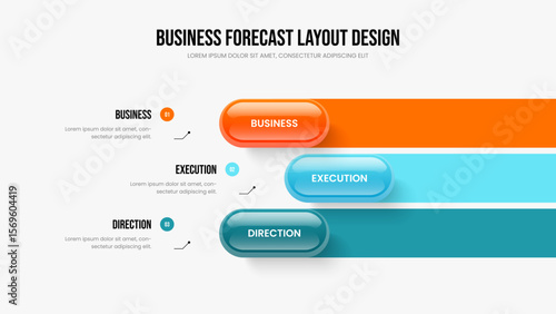 Advertising Overview Three Option Diagram Presentation Design. Business Performance Slideshow Layout Vector Illustration. Company Analysis 3 Step Infographic Frame Template.