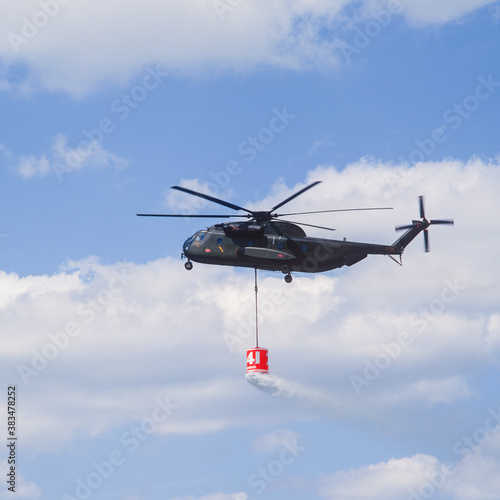 Aerial firefighting using a medium transport helicopter carrying a bucket