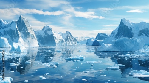 Aerial image of a shining blue glacier in Norway during a sunny day