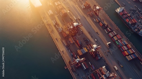 Aerial Perspective of a Bustling Shipping Port with Natural Illumination