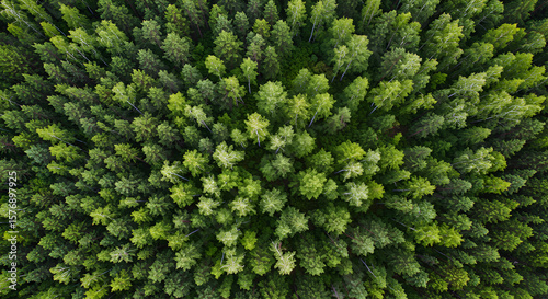 Aerial Perspective of a Dense Green Forest Canopy with Diverse Tree Varietals