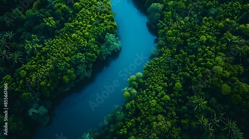 Aerial Perspective of Lush Jungle River Showcasing Natural Beauty